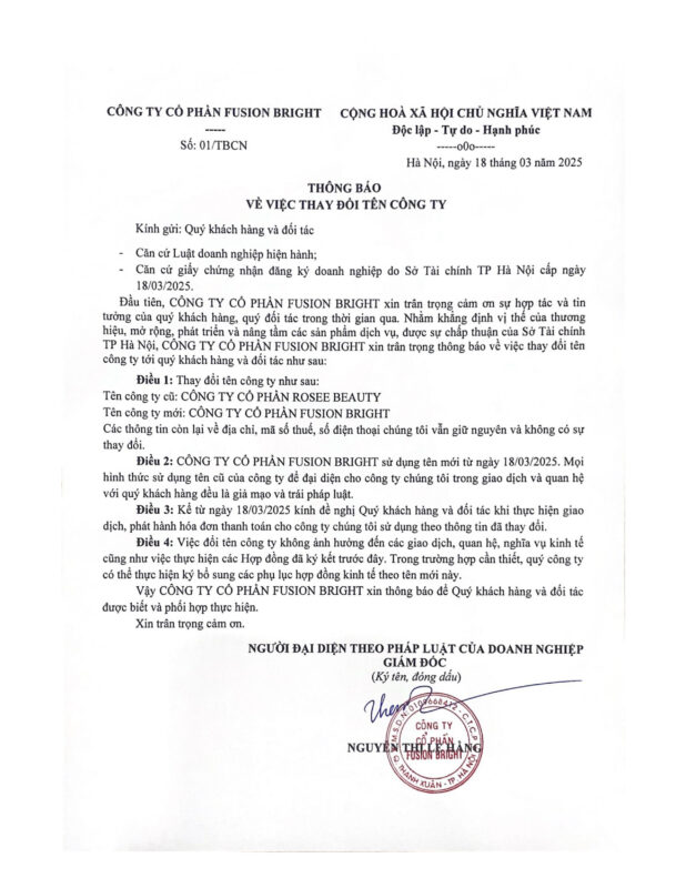 THÔNG BÁO ĐỔI TÊN DOANH NGHIỆP Nhằm khẳng định vị thế của thương hiệu, mở rộng, nâng tầm các dịch vụ và được sự chấp thuận của Sở Tài Chính Thành Phố Hà Nội